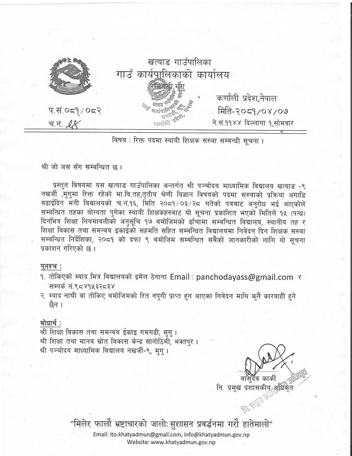 रिक्त पदमा स्थायी शिक्षक सरुवा सम्बन्धी सूचना।