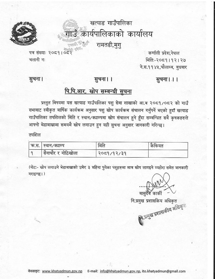पि.पि.आर खोप सम्बन्धी सूचना।